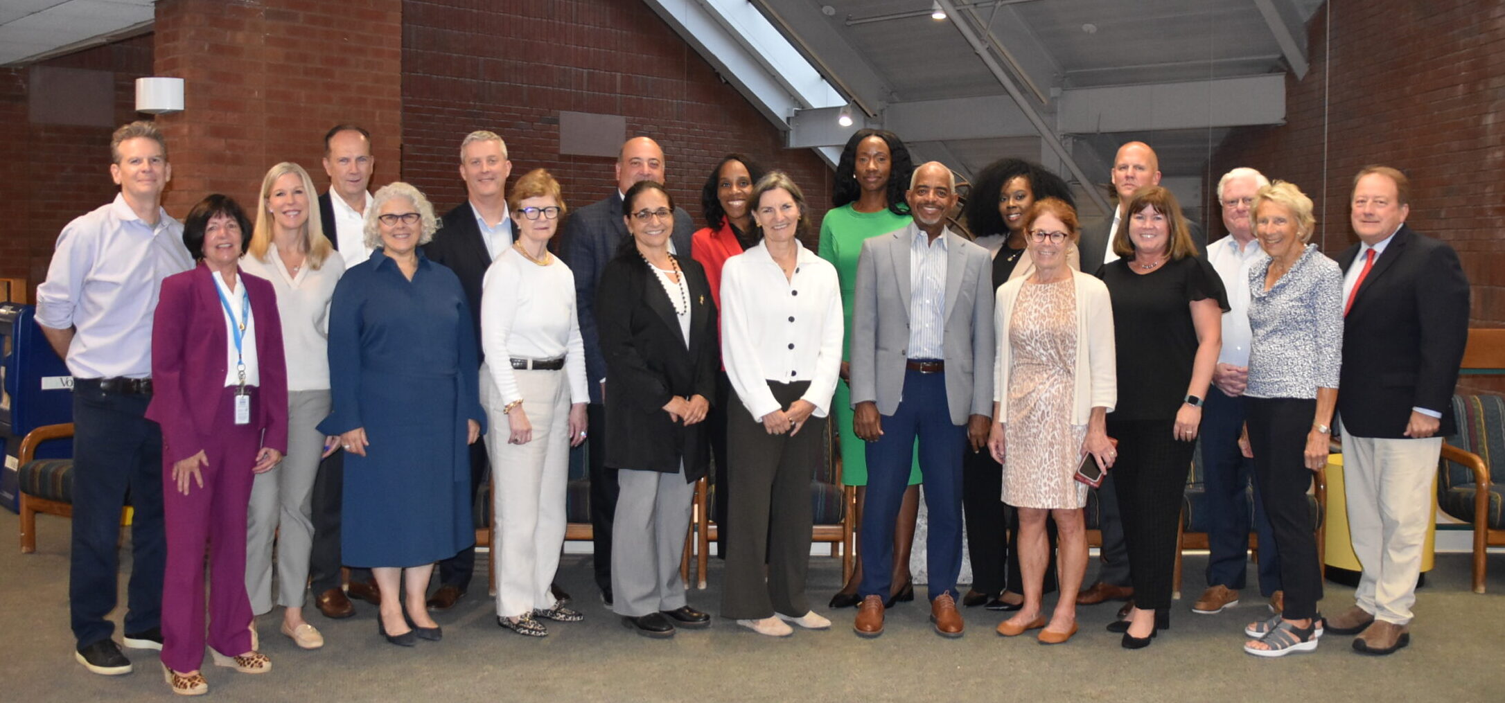From left to right: Jon Gold, NCCF President & CEO Nancy von Euler, Tara Lovanio, Thomas Reynolds, Livia Barndollar, Ken Bernheim, Ellen Petrino, Robert Granata, Adriana Molina, Rebecca Wilson, Catalina Horak, CT State Norwalk CEO Cheryl De Vonish, Vince Murphy (Emeritus Director), Porschia Turner, Debby McLean (Emeritus Director), Rob Robie, Chair Laura Erickson, George Reilly (Emeritus Director), Joan Barksdale (Emeritus Director), Steve Hart